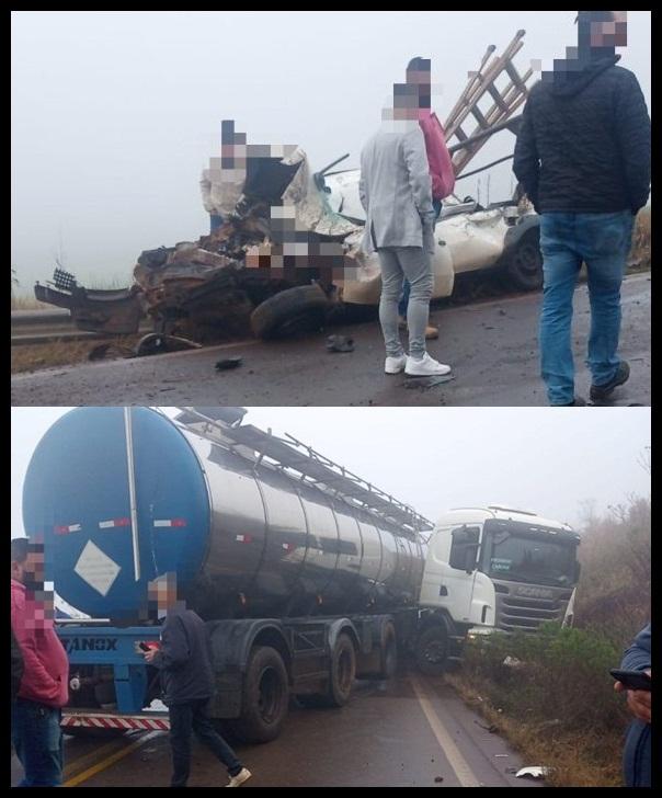 De acordo com informações preliminares, o condutor de uma carreta perdeu o controle da direção em uma curva e invadiu a pista contrária, colidindo gravemente com uma Saveiro que vinha no sentido oposto.