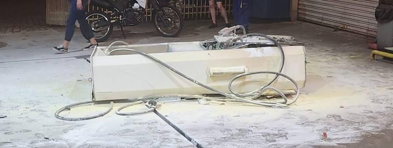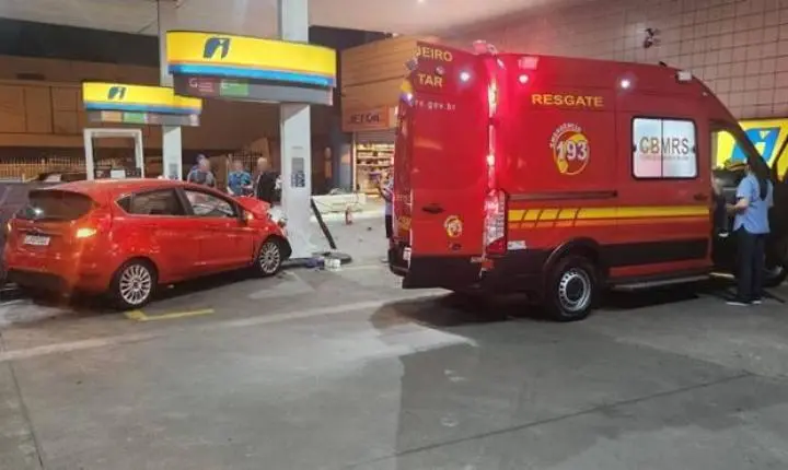 Com o impacto da colisão, a motorista do Fiesta perdeu o controle do veículo e invadiu um posto de combustíveis nas proximidades. No local, o carro atingiu um frentista e derrubou uma das bombas de combustível, que acabou pegando fogo. O incêndio foi rapidamente controlado por funcionários do posto e pessoas que estavam por perto.