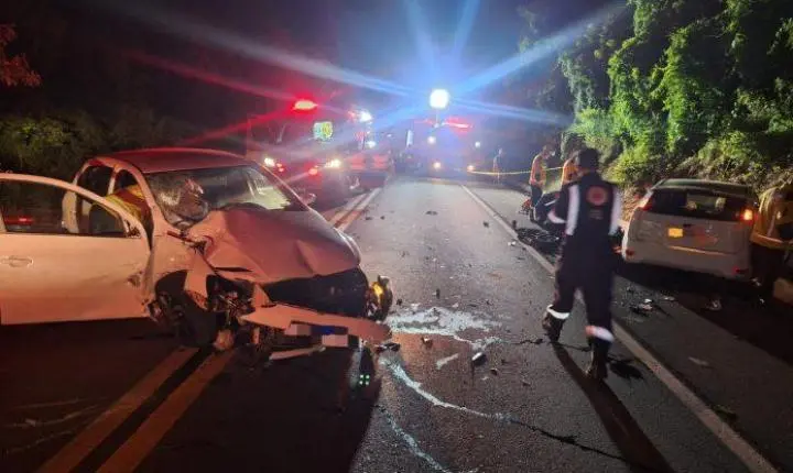 A ocorrência, atendida pela Polícia Rodoviária Federal (PRF), Corpo de Bombeiros Militar e SAMU, envolveu três veículos — um Ford Focus, um VW Gol e uma motocicleta — e aconteceu por volta das 20h55.
