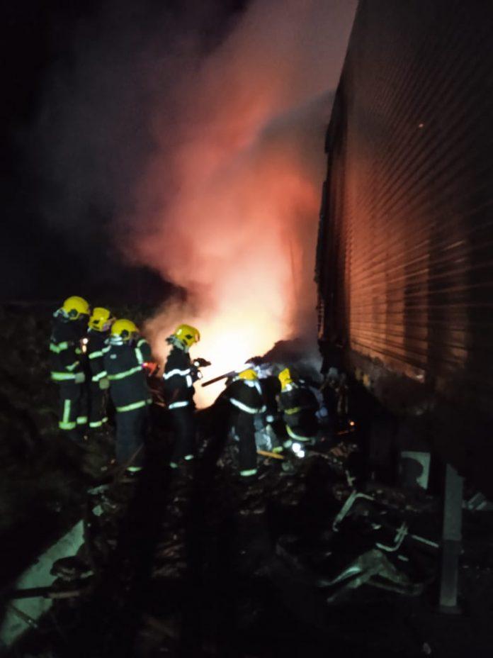 O Corpo de Bombeiros Militar de Água Doce foi acionado por volta das 23h30, com apoio das equipes de Catanduvas, Salto Veloso e Joaçaba. Ao chegarem ao local, os socorristas encontraram os veículos completamente tomados pelo fogo.